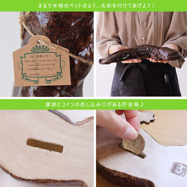 | オオサンショウウオのぬめっと感がリアルなお役立ち貯金箱! |