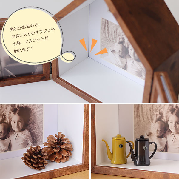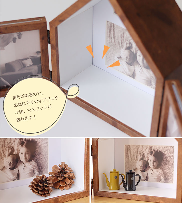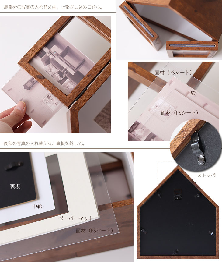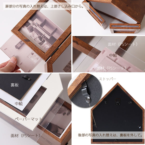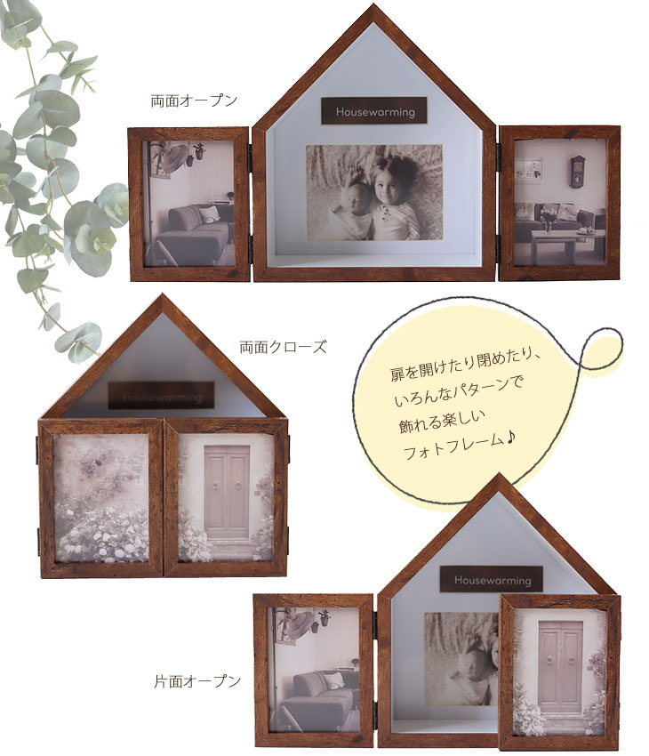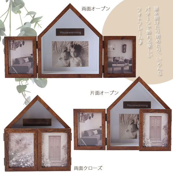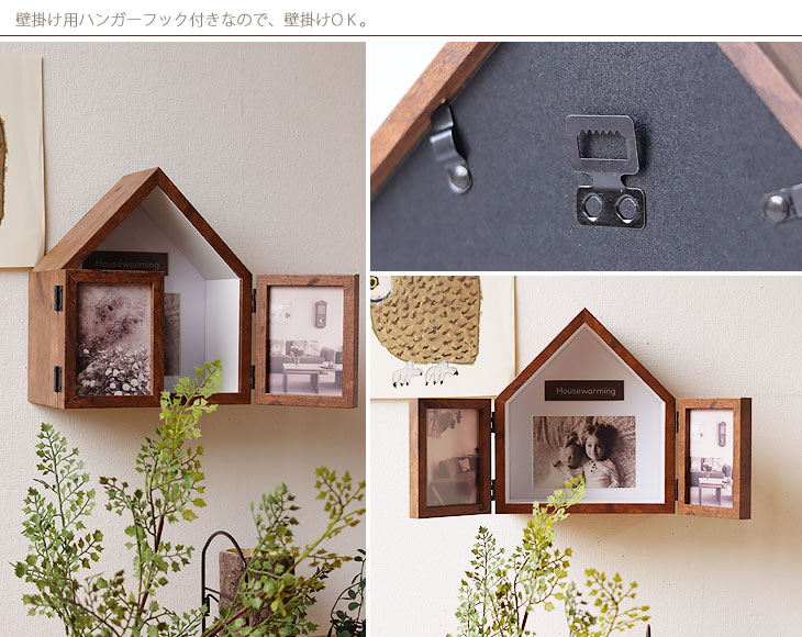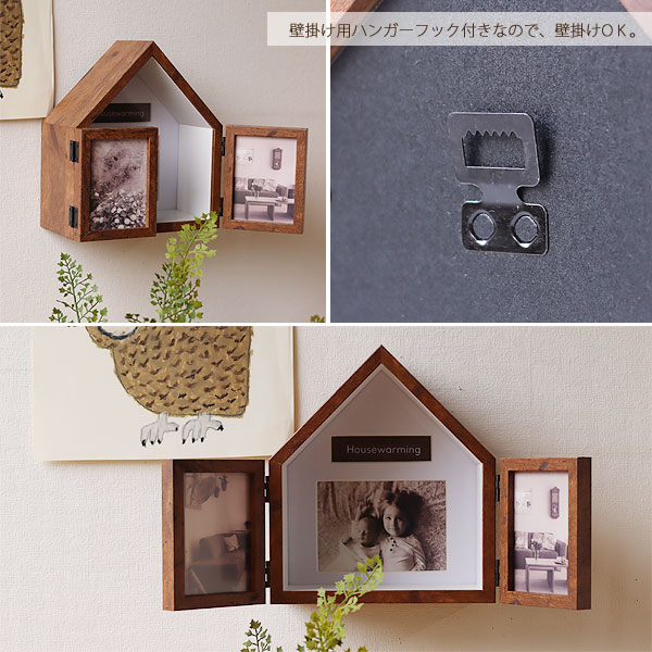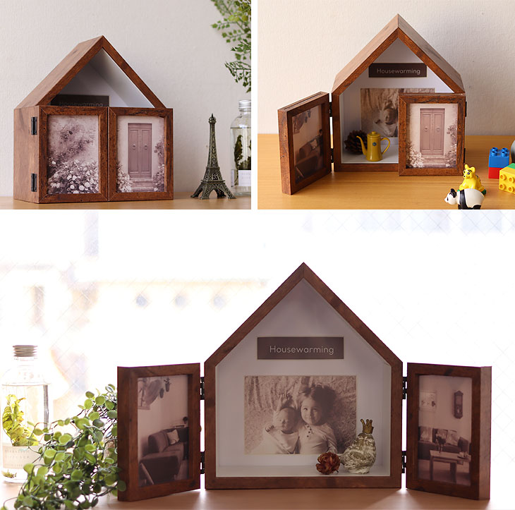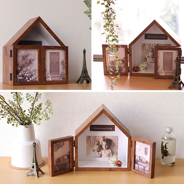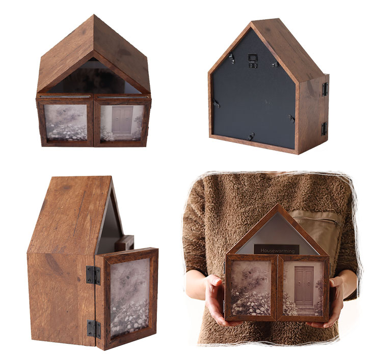 | 小物も飾れる!掛け置き両用かわいいおうち型の木製写真立て |