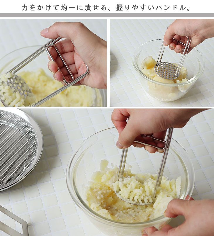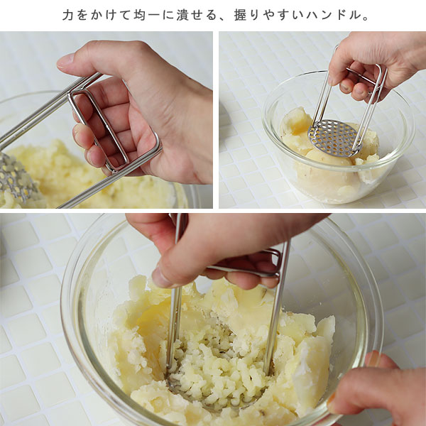 | じゃがいもやゆで卵などが簡単につぶせるポテトマッシャー |