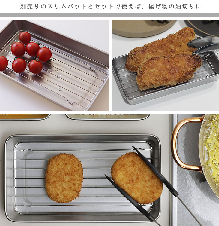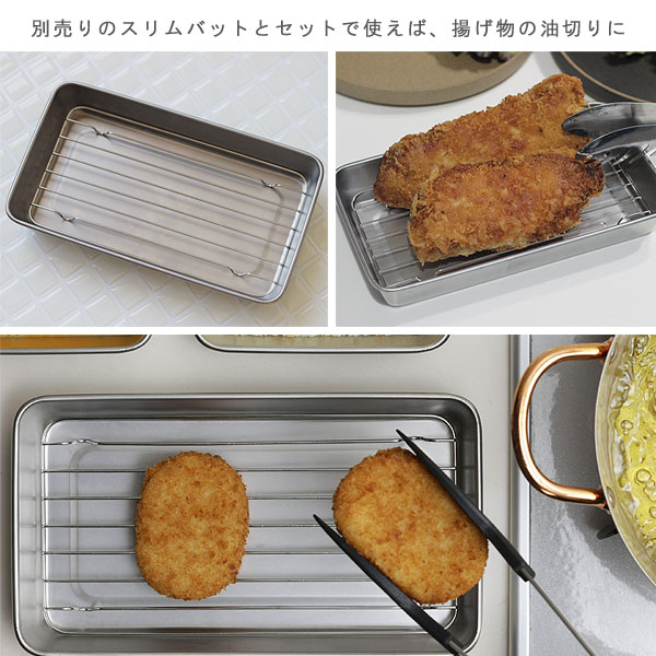 | スリムバットとセットで使える揚げものの油切りに便利なアミ |