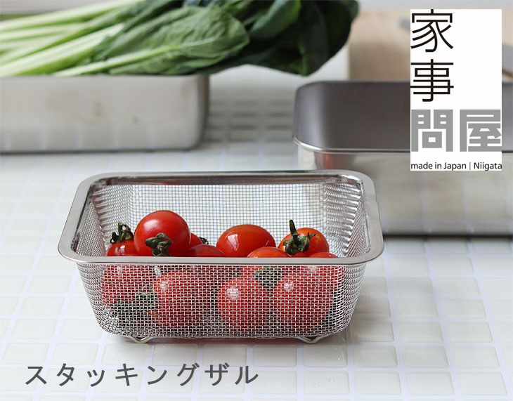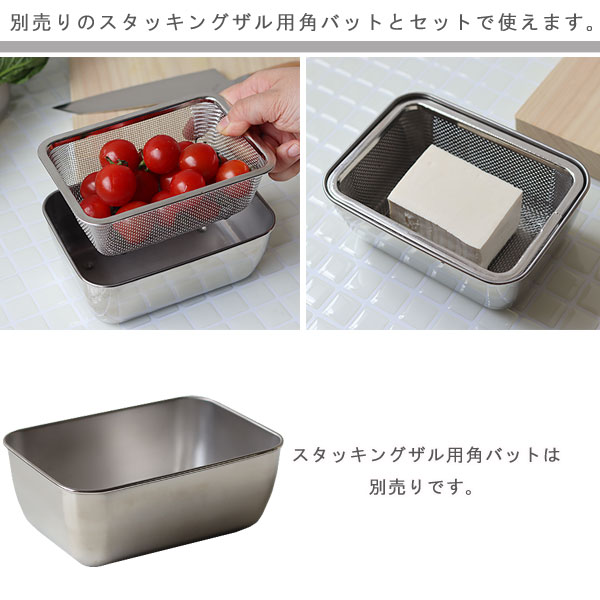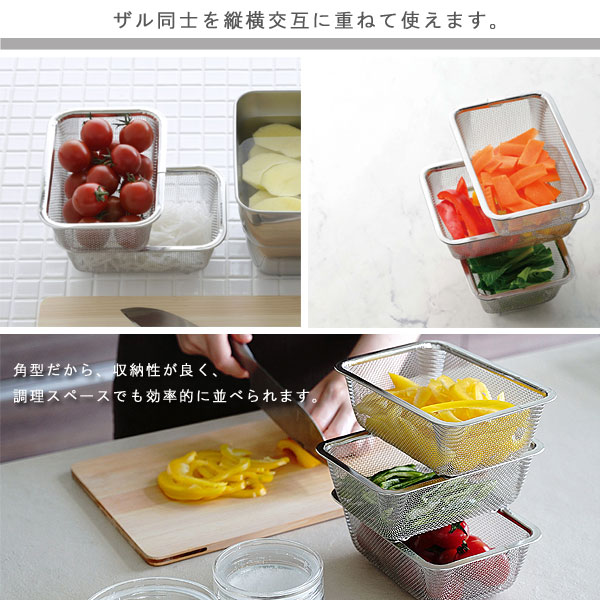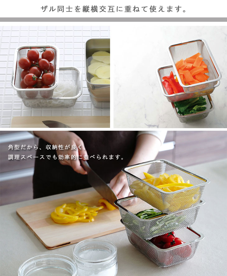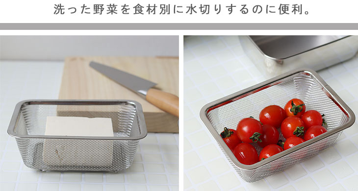 | 洗った野菜を食材別に水切りするのに便利な角型ざる |