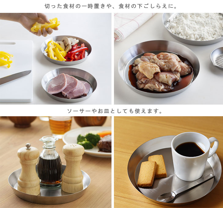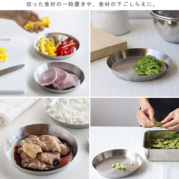 | 切った食材の一時置きやそのまま食卓にも。色々使える丸トレー |