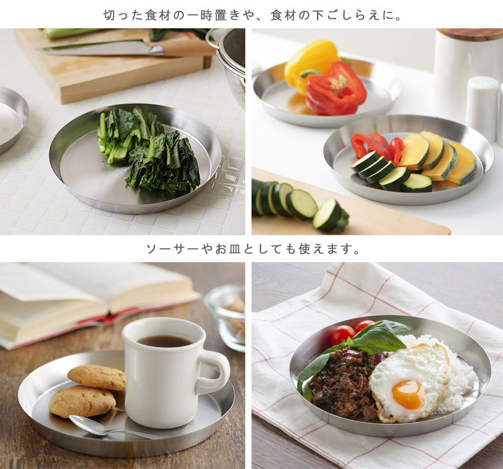 | 切った食材の一時置きやワンプレート皿にもなる丸トレー |