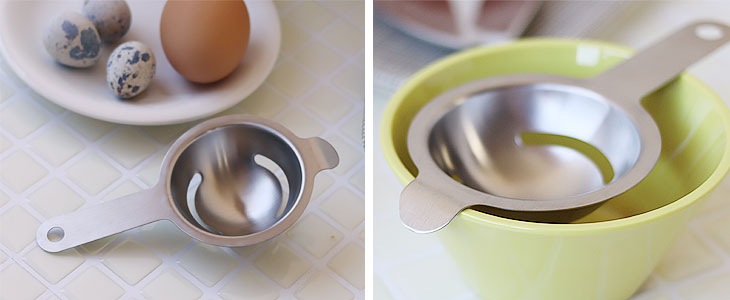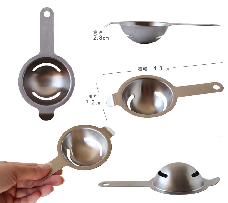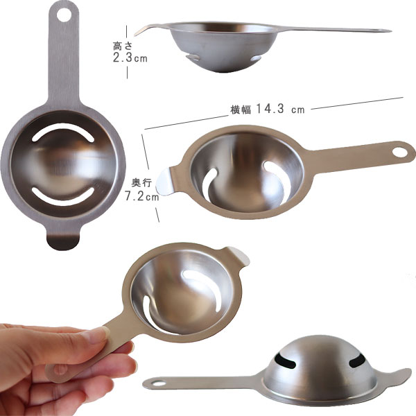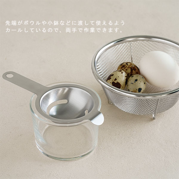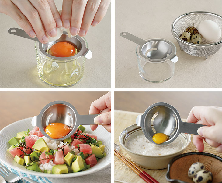 | 卵の黄身と白身をきれいに分けることができるステンレス分離器 |