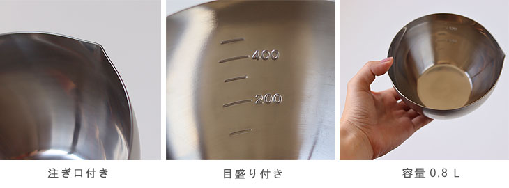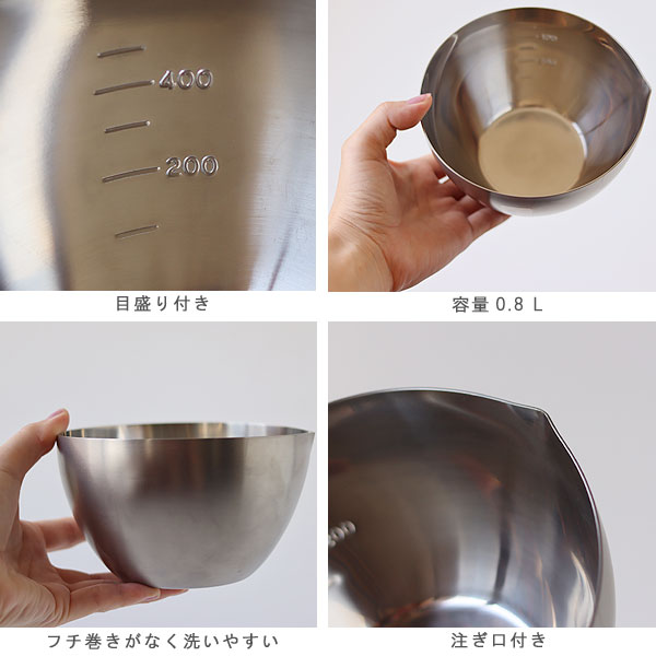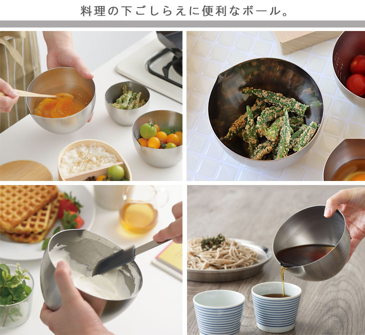 | 料理の下ごしらえに使える深さのある片手サイズのボール大 |