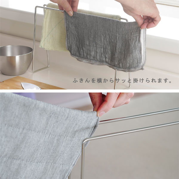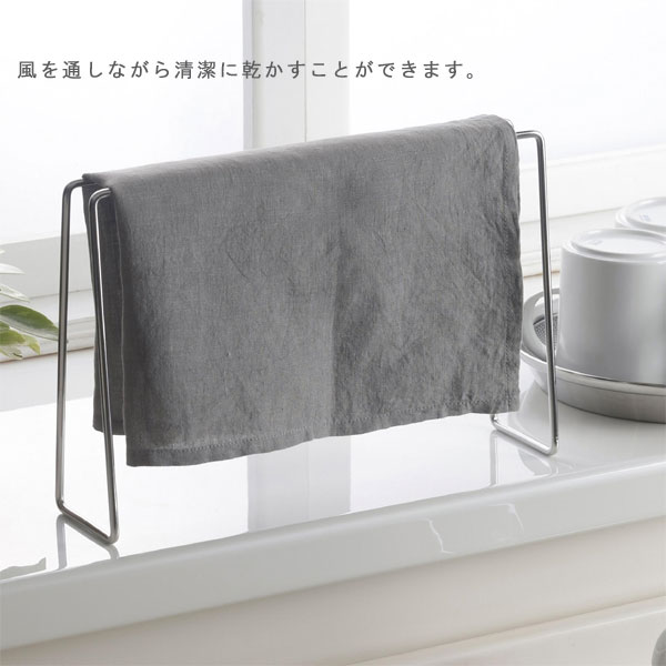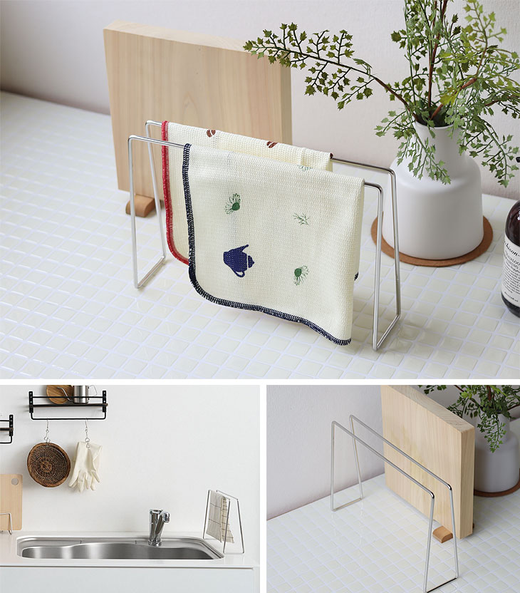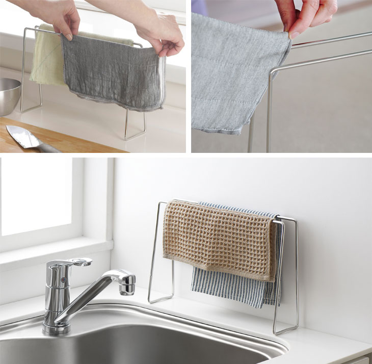 | 場所を取らず清潔。ステンレス製のシンプルなふきんハンガー |
