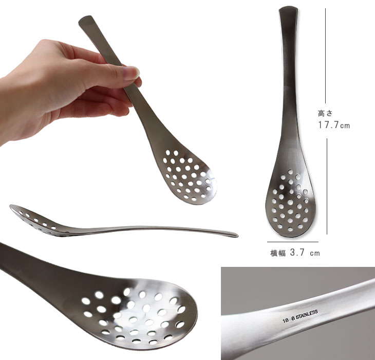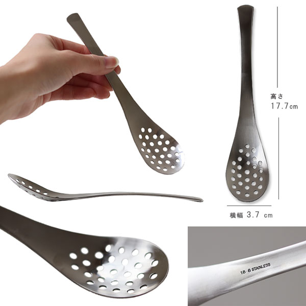 | 食材の汁気を切ってすくえる。調理や食卓で便利な穴あきれんげ |