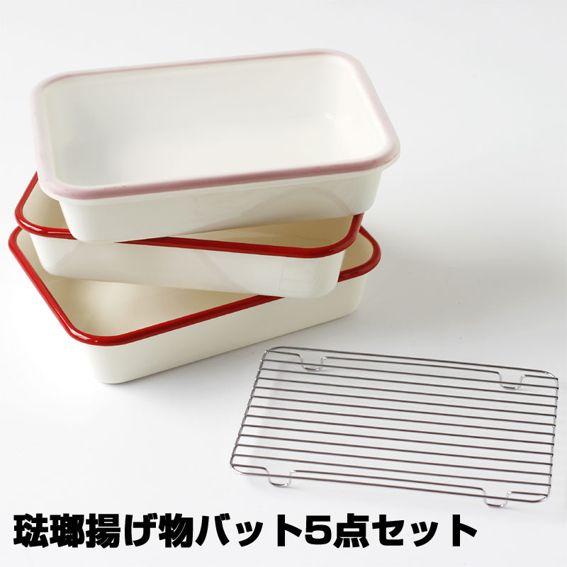 トップページ >> キッチン >> ボウル・バット >> 琺瑯揚げ物バット5点セット |
