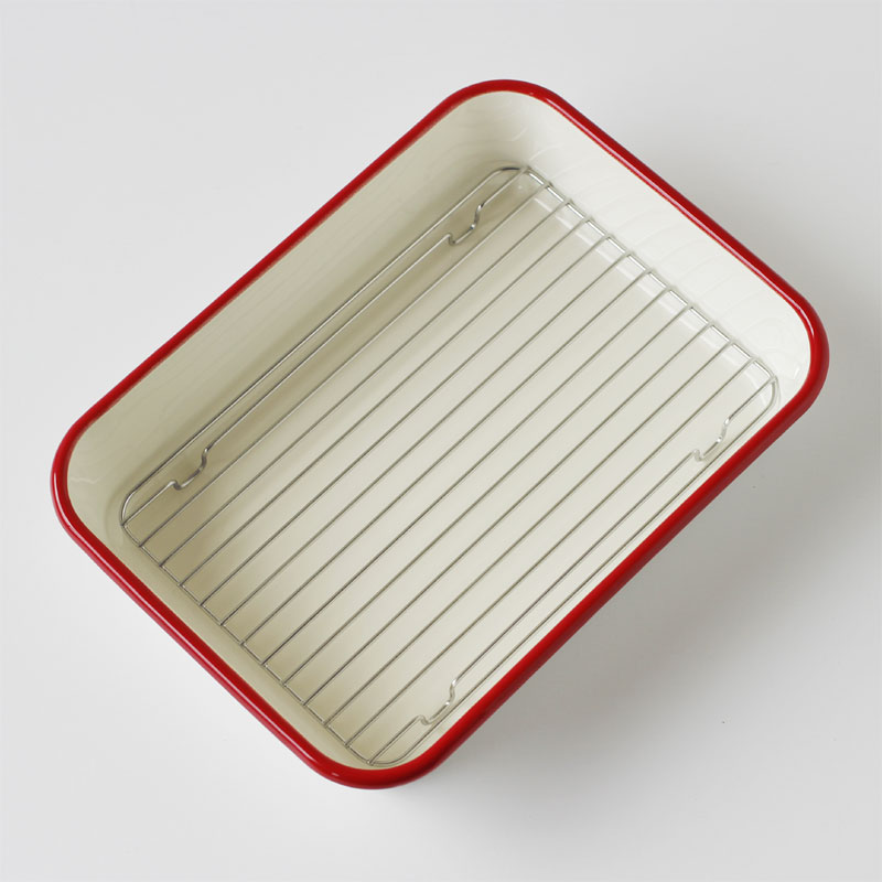 オシャレなデザインだけではなく、使い勝手もお墨付きなので、きっと気に入ってもらえるハズ。 普段使いにもよし。プレゼントにしても、きっと喜ばれそうですよ♪ ■琺瑯について■ 琺瑯は、鋼板にガラス質の釉薬を施し、850℃の高温で焼成したものです。 表面がガラス質のため、油の質と風味を変化させにくく、においがつきにくいという特徴があります。 ひとつひとつ手仕事で黒色の下釉薬(ガラス質)を焼き付け、上釉薬を焼き付けるため、フチ部および表面の釉薬には色ムラや、下釉薬の黒いスジや点が見られます。 琺瑯製品の製造上の過程でみられるものですので、琺瑯ならではの特性としてご理解くださいませ。