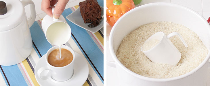 表面はガラス質なので、食品や料理の味を変化させにくく臭いの吸着も防いでくれます。 また、傷がつきにくいうえ細菌の繁殖も防いでくれますよ。 清潔を心がけたいキッチンには最適のアイテムですね。 容量が180ccですから毎日のお米の計量にどうぞ♪ シンプルながらも味のあるデザインはティータイムのミルクピッチャーなどにしてもオシャレですね。