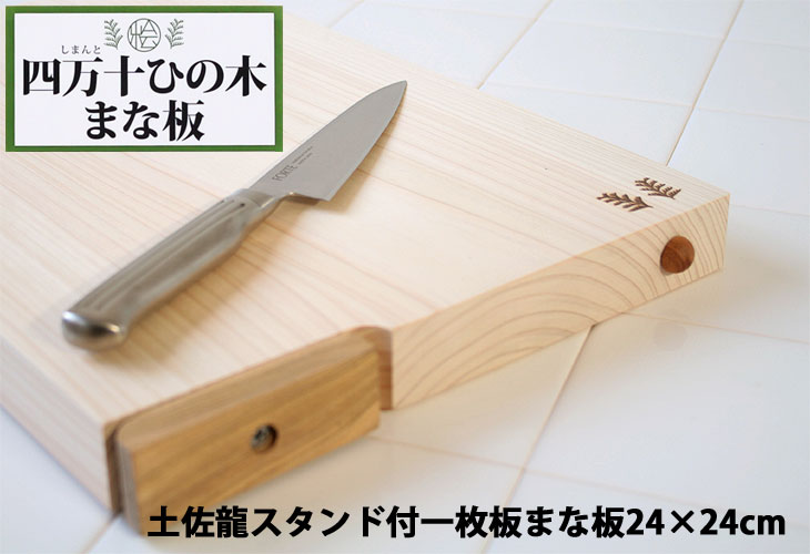 トップページ >> キッチン >> まな板 >> 土佐龍四万十ひのきスタンド付一枚板まな板HS3007・24×24cm |
