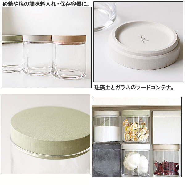 | 吸湿性に富んだ珪藻土の蓋とガラスの保存容器・調味料入れ |