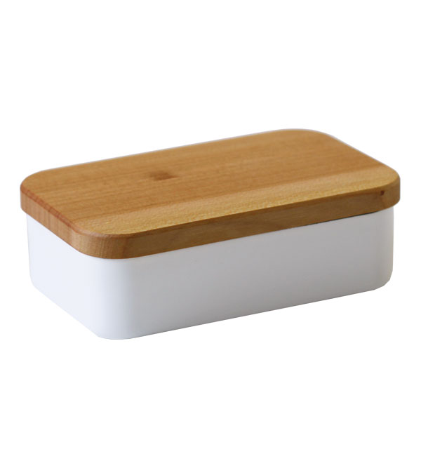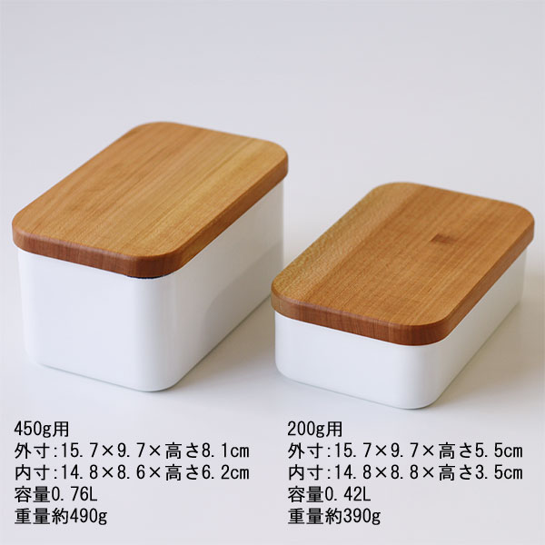 野田琺瑯は、昭和9年から70年以上の歴史を持った日本でも有数の琺瑯製品のブランドです。琺瑯製品は、昔ながらの製法でこだわりのある日本の職人により、ひとつひとつ丁寧に仕上げられてます。 そんな大人気ブランドの野田琺瑯から、シンプルであたたかみのあるデザインの、バターケースが登場しました。 まっしろなホーローに、木蓋はサクラの天然木を使用しています。 本体をひっくり返し、木蓋をソーサーにして使用し、そのまま食卓に出すこともできます。 実用性とインテリア性を兼ね備えたバターケースです。