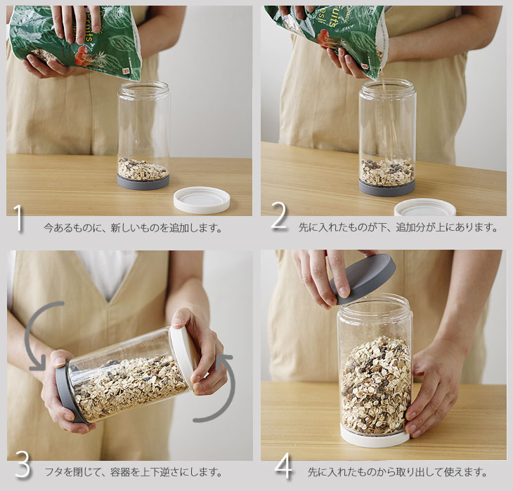 | 色違いのフタが上下に付いた乾物保存キャニスターMサイズ |
