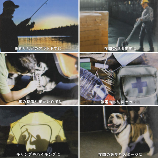 ポータブルLEDワークライトは防水等級IP65の防雨・防塵設計。 機器の正常な作動に支障をきたしたり、安全を損なう程の料の粉塵が内部に侵入しない防塵保護、 いかなる方向からの水の直接噴流によっても有害な影響を受けないしっかり防水設計です。 急な雨や濡れた手でも安心。アウトドアでの作業やレジャーなど幅広くご使用いただけます。 ペットボトルと同じ、重量はわずか500gと軽量! 単行本よりも一回り小さく、厚み4.5cmで片手で容易に掴める薄型サイズ! 屋外への持ち運びが楽にできて荷物にならず、収納にも困りません。 ※本製品は水滴や雨などから保護できる製品ですが、水中での使用は絶対にしないでください。 夜や暗がりでの車やバイク、自転車の整備、あらゆる箇所のDIYなどの細かい作業の救世主! 夜が楽しいアウトドア。釣り、登山、カメラ、キャンプのおともに♪ 避難セットに入れておけば、停電時にも十分な明るさで照らしてくれます。 夜の愛犬のお散歩や部活の練習に。道路もボールもよく見えて安心です。
