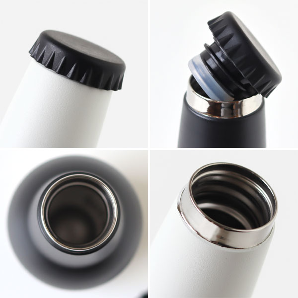 ビール瓶の栓型のキャップは、とても開閉がしやすい優しい形状になっています。 保温、保冷効力もばっちり!暑い夏も、寒い冬も、年中使えるのが嬉しいですね♪ 飲み物を入れたらしっかりとフタ受けを締めてください。 ※電子レンジ、食器用洗浄機、食器用乾燥機は使用できません。 |