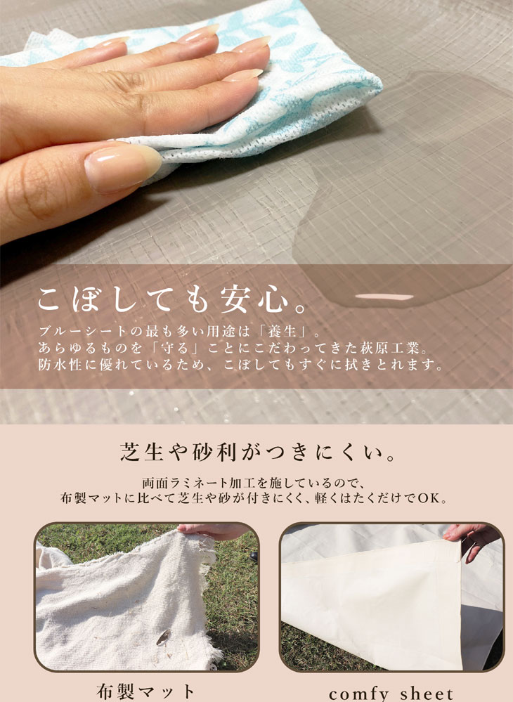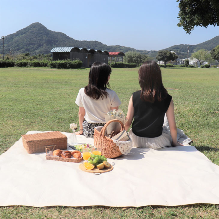 | 主役を引き立てるシンプルなくすみカラーのレジャーシート |