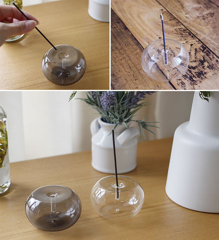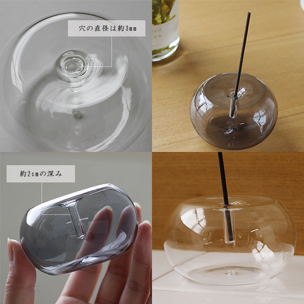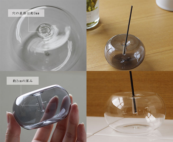 長めのお香は短く切ったり、お香立てをお皿やトレイに乗せてからお使いください。 穴は約2cmと深みがあるので、竹芯香のような細めのお香も使用可能です。 お線香にも◎