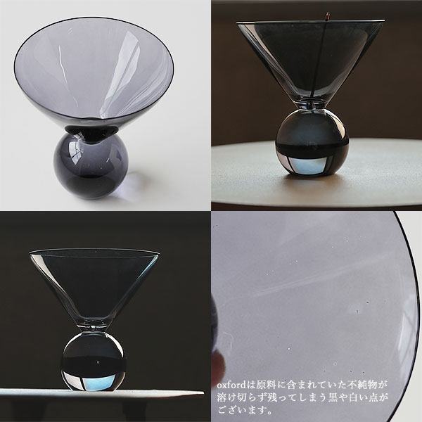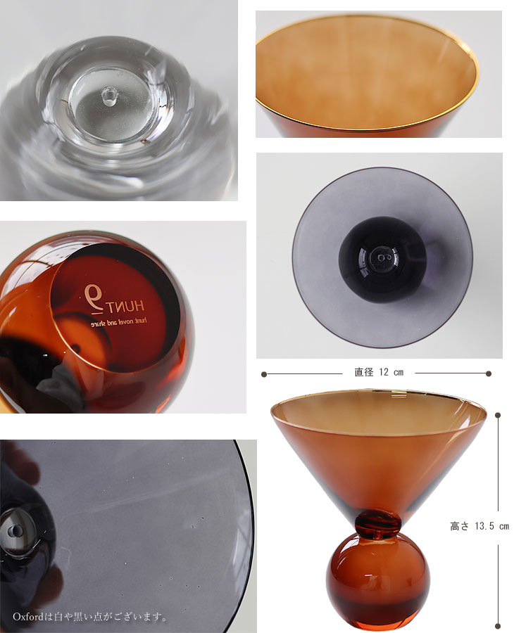 oxfordはブラックカラーのガラスが、明るいところではブルーグレーのような透け感になり置く場所によって印象が変わります。 シンプルだけど、しっかりとサイズがあるので存在感ばっちりです。 底にはHUNT9のロゴが入っています。 ※oxfordは原料に含まれていた不純物が溶けきらず残ってしまう白や黒い点がございます。予めご了承ください。