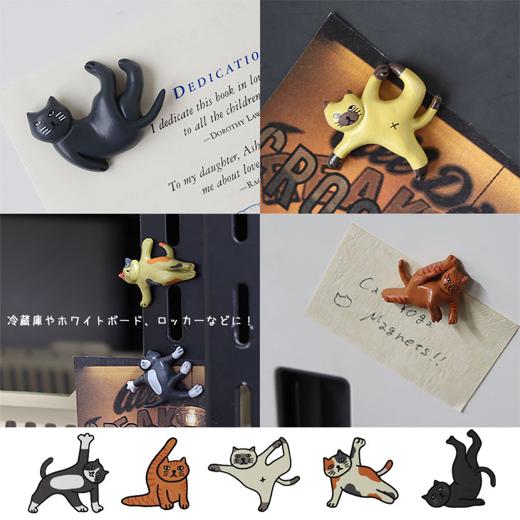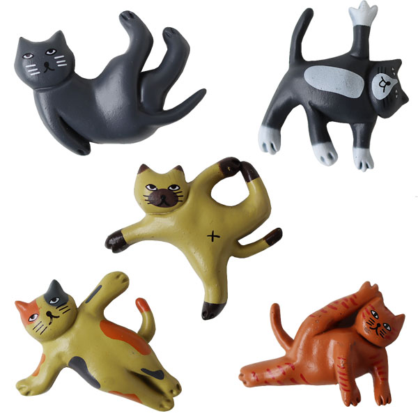 | ヨガポーズをしているネコのかわいいマグネット5個セット |