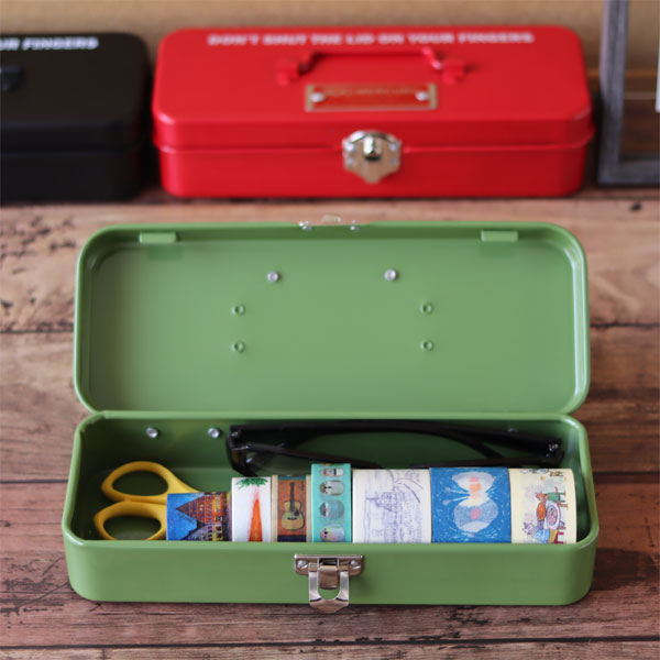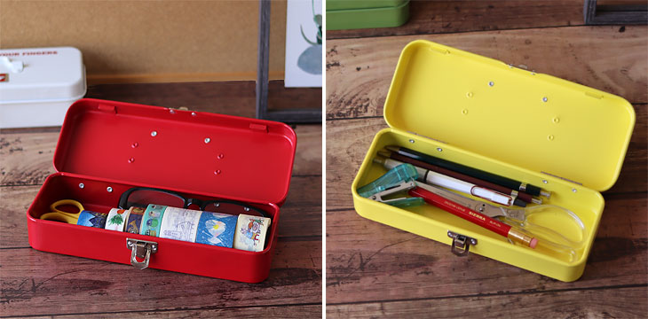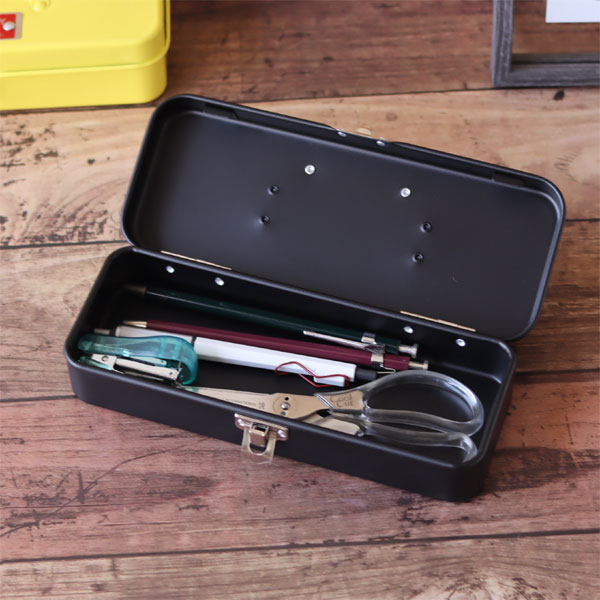 | ペンケースとしても使えるレトロなブリキ製のミニツールボックス |