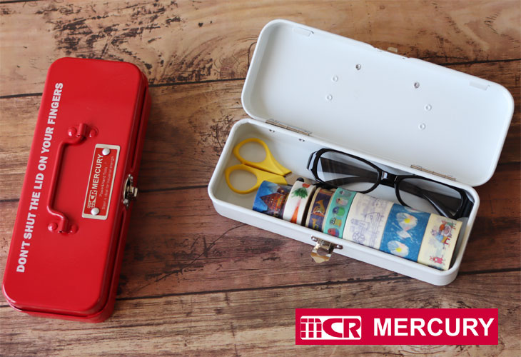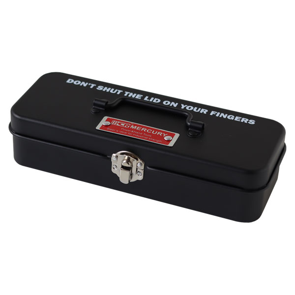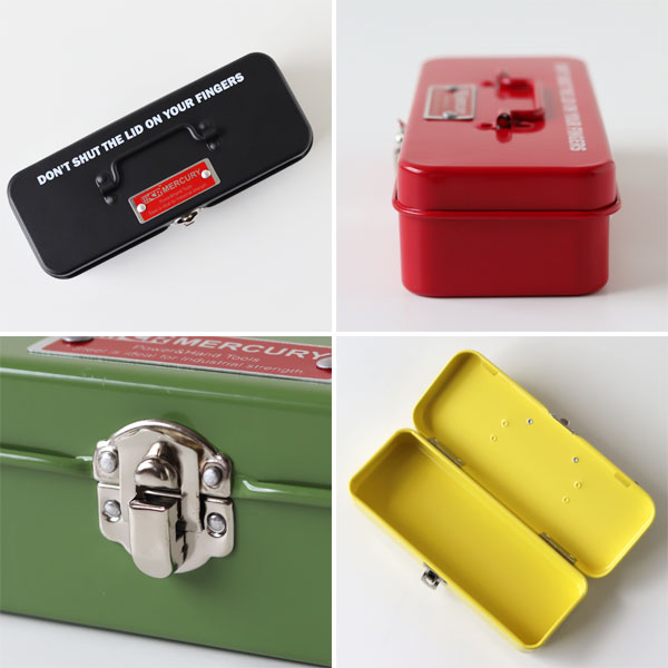 そんな50年代から70年代のパワフルなアメリカンカルチャーから生まれたデザインを形にした物が「マーキュリー」 どこか懐かしさを感じるオールドジェネレーションと、古き良きアメリカを知らないニュージェネレーションとを結び付け 共感を味わいたい。 そんなマーキュリーから、ペンケースにもなるブリキ製のミニツールボックスの登場です。