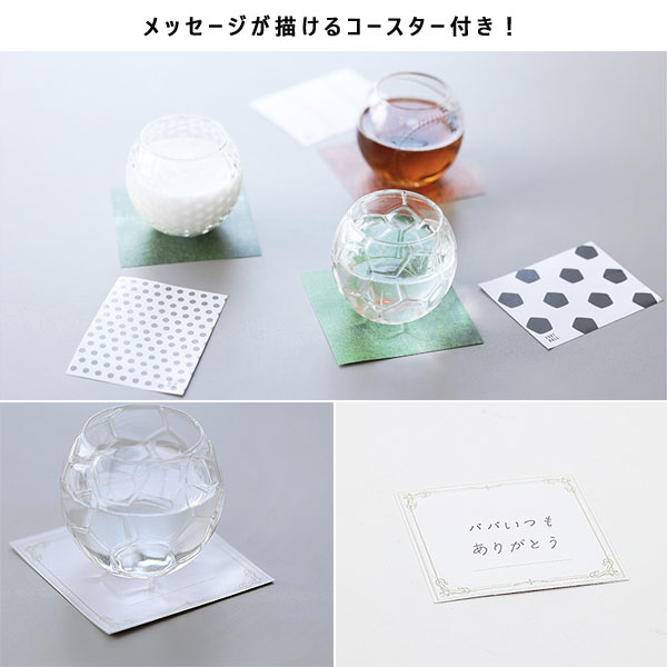 ![]() スポーツ好きに贈る、遊び心あふれる特別なグラス! スポーツファンやアスリートに喜ばれる、ユニークなコップが登場♪ サッカーボール、野球ボール、ゴルフボールのデザインをリアルに表現した、特別感あふれるグラスです。 普段使いはもちろん、記念品や贈り物としても最適。 スポーツ大会の景品や、父の日、誕生日プレゼントなど、特別なシーンにぴったりなアイテムです。 パッケージの下に、メッセージが書けるコースター付き! ![]() ![]() サッカーの応援時にぴったり! 歓送迎でチームの思い出にプレゼント! ![]() 手に汗握る、野球試合中もグラスを握って。 ボールの握り方のイメージトレーニングにも!? ![]() 「パパ、いつもゴルフもいいけど、今日はお家でこのボールで我慢してね♪」 コンペの景品にもぴったりです! それぞれのグラウンドをモチーフにしたパッケージ入り! ![]() こんな人に、こんな時に! スポーツ好きなお父さんや友人に。 スポーツ観戦のおともに、このグラスと一緒に応援! スポーツ大会、ゴルフコンペの景品に。 父の日に、「いつも練習に付き合ってくれてありがとう」の気持ちとともに。 ![]() パッケージの底に、メッセージが描けるコースター付き! 裏面は芝生や砂がプリントされているので、裏をむけて飾っても◎ ![]() 容量は300mlで、ウィスキーや日本酒を入れてアルコールグラスとして♪ 食洗機での使用が可能なので、普段使いもばっちりです! ユニークで楽しいフリークグラスは、スポーツを愛する人へのプレゼントにおすすめです。 使用上、保管上のご注意 ・本製品は食洗器での使用が可能です。 ・ガラス製品にのため、取り扱いには十分ご注意ください。 ・ガラス製品は製造技法上、同じ商品でも個体差がございます。 ・製造工程上、多少の傷や気泡、細いライン、洗浄跡が入る場合がございますので予めご了承ください。 ・研磨剤入りのスポンジやクレンザーなどは傷をつける原因となりますので使用しないでください。 ・高価なものの近くや小さな子どもやペットの手の届かない場所に保管してください。 ・直射日光が当たる場所での長時間の放置は避けてください。 |