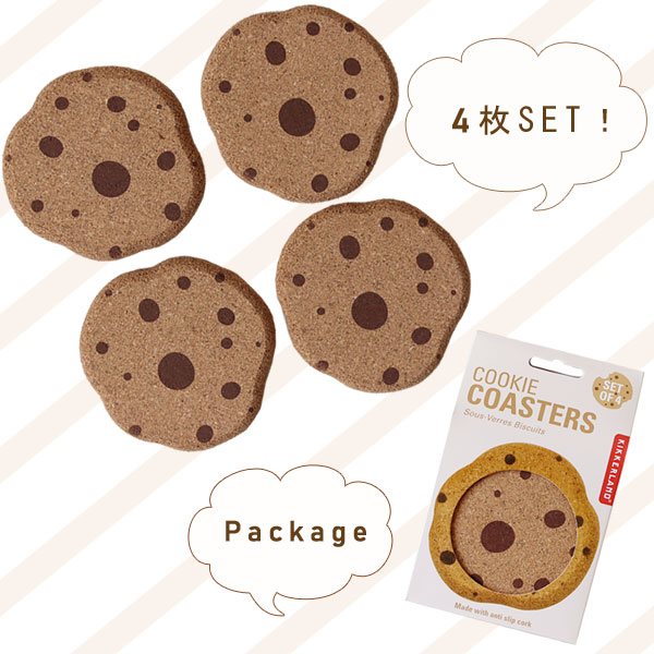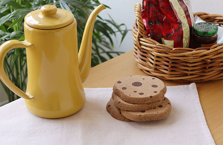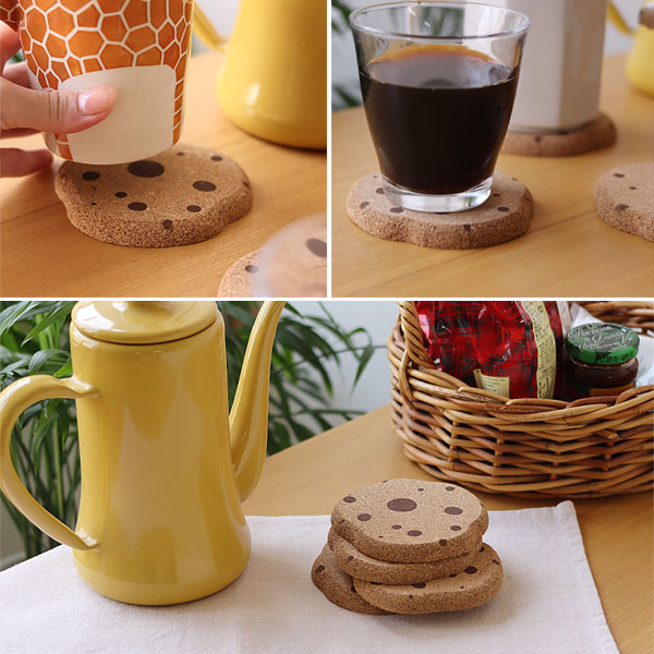 | コルク製のチョコチップクッキー型コースター4枚セット |