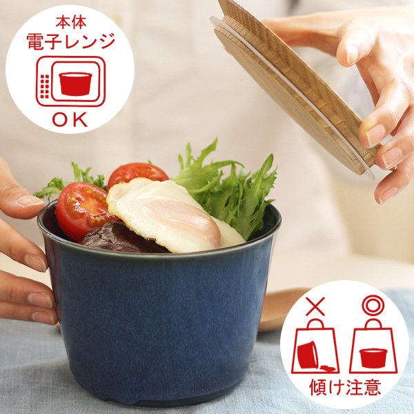 | お弁当箱にしてもOK♪木蓋付陶磁器製の丼ぶり大 |
