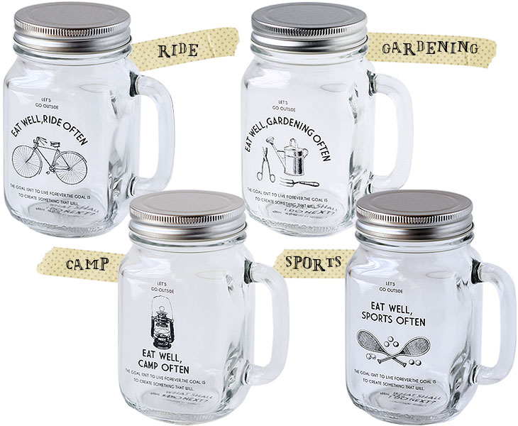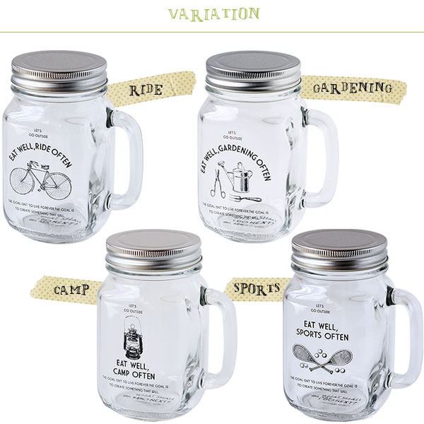 | アウトドアモチーフのイラストが可愛いドリンクジャー♪フタ付 |