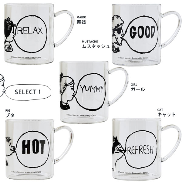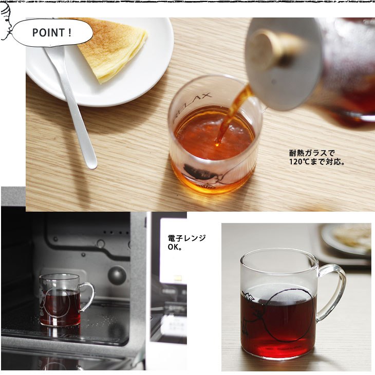 | シンプルな薄い耐熱グラス♪独特なタッチのイラストがキュート |