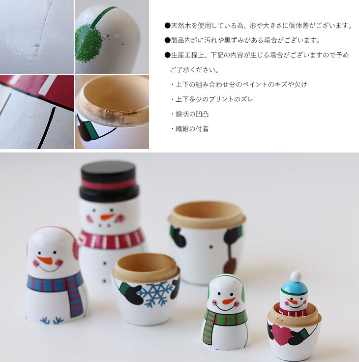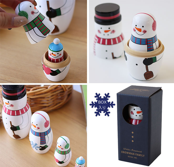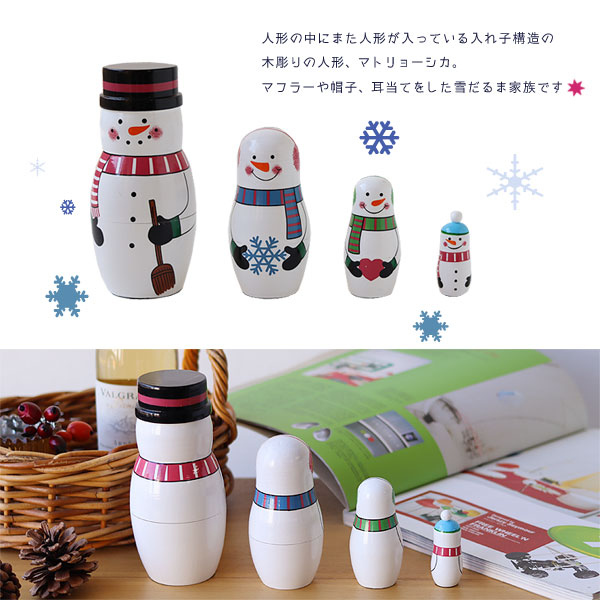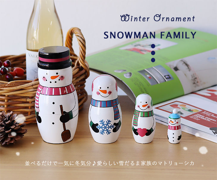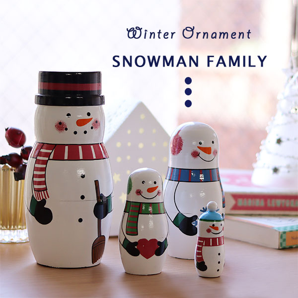| クリスマスシーズンに!雪だるまファミリーのマトリョーシカ |